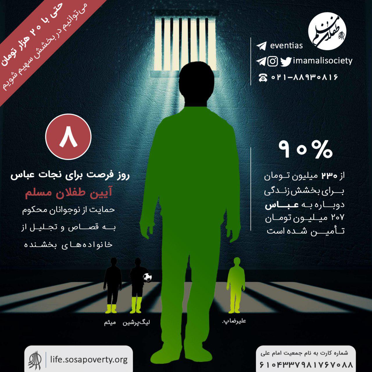 غروب یكی از روزهای سرد آذر ١٣٨٤، غروب غمناک یک زندگی بود و حبس و انتظاری ۱۳ ساله برای تعیین سرنوشت یک زندگیِ دیگر. عباس ۱۷ سال بیشتر نداشت، در حال و هوای نوجوانی از مدرسه به سمت خانه حرکت میکرد که فریادهایی به گوشش میرسد. به سمت خانه میرود و در لحظهای متوجه میشود نزاعی بین خانوادهاش و همسایهشان در گرفته. اما این نزاع بر سر چیست: "چاله آبی جلوی درب حیاط خانه خانواده عباس وجود داشت و در آن آب جمع میشده و زمانی که گوسفندانِ عباس به داخل حیاط میرفتند، باعث گِل شدن حیاط میشدند. خانواده عباس چاله و جلوی حیاط را آسفالت میکنند تا از گِل شدن حياط جلوگيری كنند که همسایه شاکی میشود و می گوید این آسفالت باعث شیبدار شدن کوچه شده و آب را به حیاط ما سرازير میکند." عباس میبیند كه همسایه به همراه تعداد زیادی از اقوامش به خانهشان ریخته و در نبود پدر، با خواهر و مادرش دعوا میکنند. دیگ احساسات ناپخته و خامش به جوش آمده و به خیال خود برای دفاع از خانوادهاش در برابر خیل افراد حاضر، چاقوی کوچکی از جیب برمیدارد و وارد معرکه میشود. یکی از همسایهها، مردی میانسال، به قصد میانجیگری پیشقدم میشود. در ازدحام و شلوغی دعوا كسی متوجه كسی نبود... عباس دیر به خودش میآيد؛ وقتی زمان از دست رفته، تیغه چاقویش سرخ شده و همسایه ميانجی، غرق در خون نقش بر زمين شده بود. عباس که حالا دهه سوم عمرش رو به پایان است، هنوز دارد تاوان میدهد؛ تاوان عکس العمل نابخردانه و عصبی ۱۳ سال پیش خود را ... حالا خانواده محترم اولیای دم راضی به اعلام رضایت شده و ۳۳۰ میلیون تومان به عنوان وجه المصالحه تعیین نموده و البته تأکید کردهاند اگر مبلغ تا اربعین تامین نشود، مجددا درخواست قصاص خواهند داد. خانواده عباس، دار و ندار خود را فروخته و ١٠٠ میلیون تومان فراهم کردهاند و اینک برای تامین مابقی مبلغ (۲۳۰ میلیون تومان) به دستان پر مهری نیاز است که دست به دست هم دهند و زیباترین سرانجام را برای این ماجرای تلخ رقم بزنند.