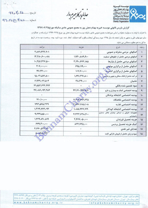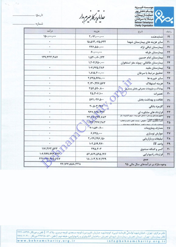 آدرس | میدان تجریش، بیمارستان شهدای تجریش، ساختمان شماره شش (بخش آنکولوژی رادیوتراپی)، طبقه دوم، موسسه خیریه بهنام دهش پور |