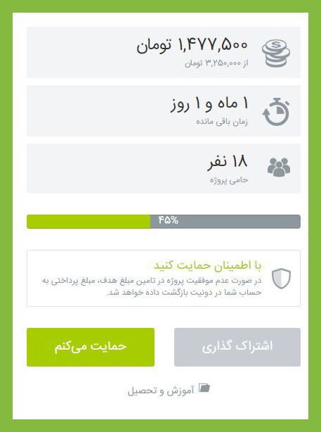 مبلغ کل طرح مربوط به هزینههای خرید طبق پیشفاکتور و هزینههای جانبی، مانند درصد کارمزد سایت «دونیت»، میباشد.