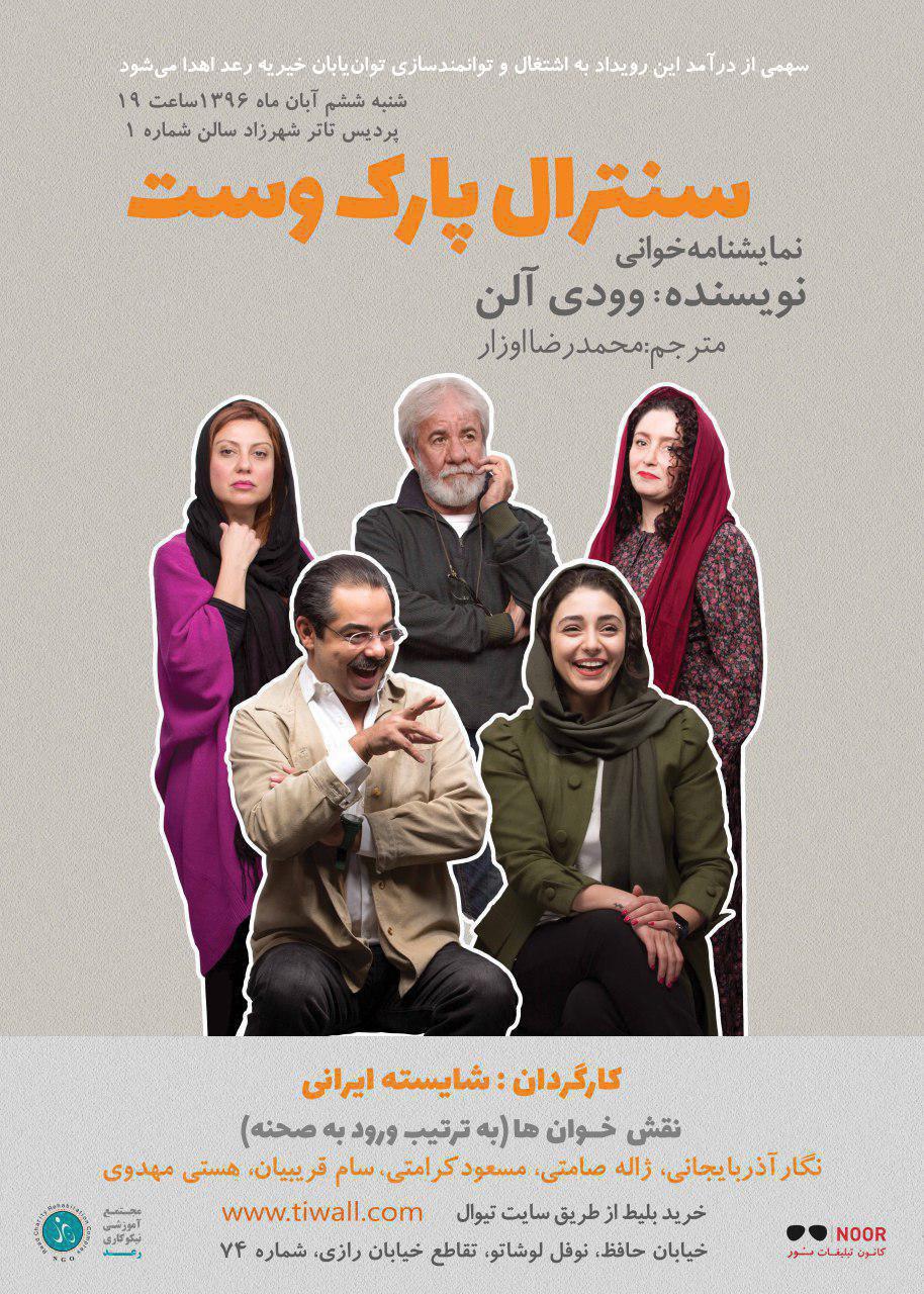 «شایسته ایرانی» بازیگر سینما و تلویزیون، جلسه نمایشنامه خوانی «سنترال پارک وست» اثر «وودی آلن» را در پردیس تئاتر «شهرزاد» برگزار میکند.