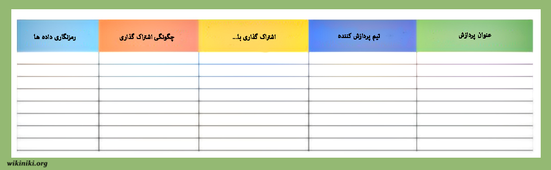 - لیست افرادی که، این اطلاعات را با آنها به اشتراک میگذارید، فهرست کنید. (تیم مالی و یا هر کسی که داخل سازمان شما باشد.)