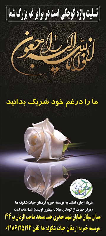 با سفارش بنر و تاج گل تسلیت از موسسات خیریه، فرهنگ دوری از تجملات و جلوگیری از اسراف را اشاعه خواهیم داد.