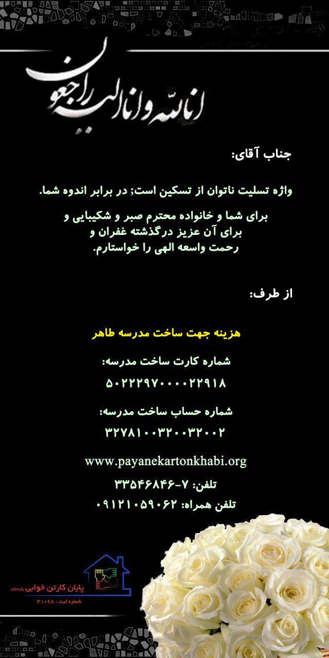 موسسات خیریه دارای تاج گل و بنر تسلیت در شهر تهران