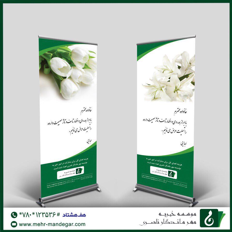 با سفارش بنر و تاج گل مصنوعی از موسسات خیریه، علاوه بر عرض تسلیت به خانواده متوفی، در کار خیر شریک شویم.