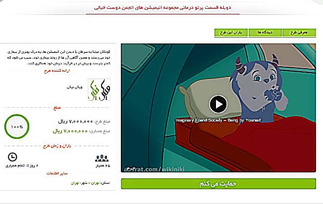 با تکمیل جمعسپاری مالی در سامانه «فاندینو» برای دوبله قسمت «پرتو درمانی» از مجموعه انیمیشنهای دوستان خیالی، بار دیگر «ویکینیکی» با دستان مهربان شما، اقدام به دوبله این قسمت خواهد نمود تا شاید نقشی کوچک در کمرنگ نمودن درد و رنج این فرشتههای آسمانی داشته باشد.