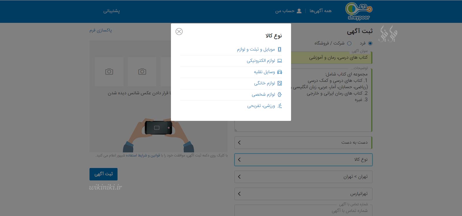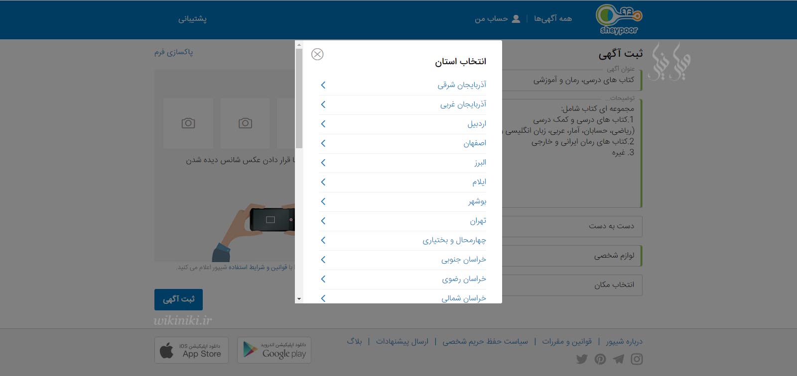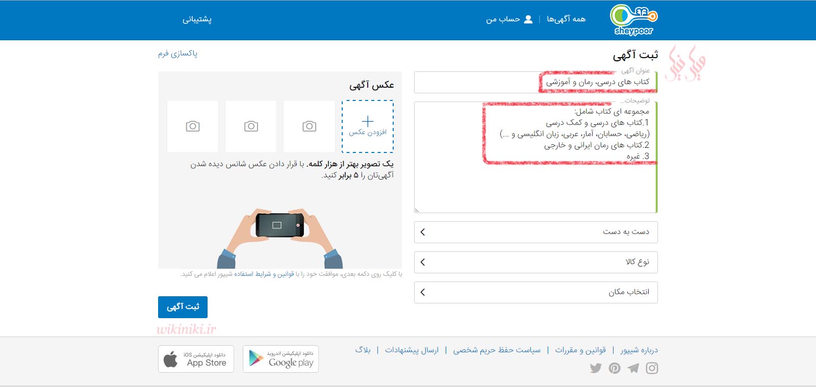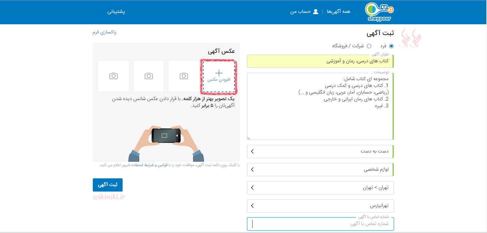 7. پس از آپلود عکس، بر روی گزینه "ثبت آگهی" کلیک کنید.
