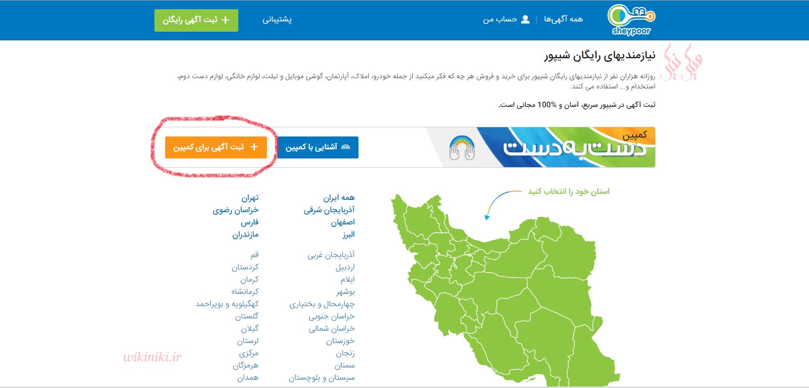 2. روی گزینه ثبت آگهی برای کمپین، کلیک کنید.