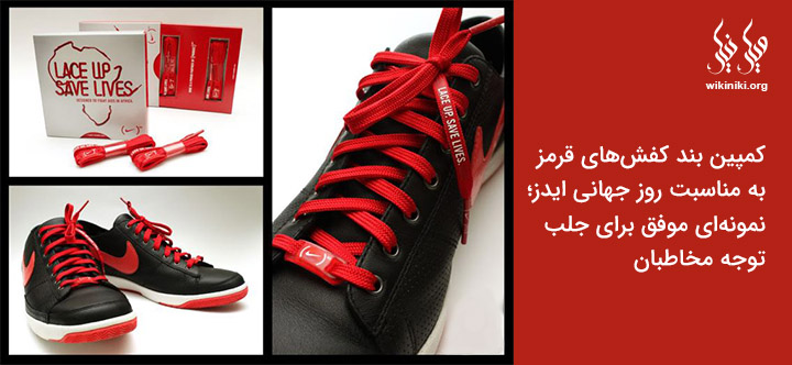 یا اینکه شرکت نایک را در نظر بگیرید که در اوایل سال ۲۰۱۰ با سازمان بازاریابی اجتماعی رِد (قرمز) شریک شد تا کمپین بندکفشهای قرمز را برای روز جهانی ایدز راه بیندازند. نایک بندکفشهای قرمزی درست کرد که به چشم میآمد و تمامی عواید حاصل از فروش آن را برای مبارزه با ایدز میبخشید. آنها با توییتر وارد عمل شدند، تبلیغی را روی صفحه اصلی توییتر قرار دادند که این جنبش را ترویج میکرد و متن تمام توییتهایی که هشتگ #قرمز یا #بندراببندجانرانجاتده را داشتند قرمز میکرد. برای تهییج جامعه توییتری، آنها از افراد مشهوری که عضو توییتر بودند نیز خواستند که این توییت یا نسخه خودشان از این پیام را توییت کنند: «امروز روز جهانی ایدز است. ما با هم میتوانیم از طریق ورزش با ایدز بجنگیم. #قرمز #بندراببندجانرانجاتده». نایک با کمک این افراد تاثیرگذار توانست در عرض یک روز این پیغام را به ده میلیون نفر برساند. بیش از نیم میلیون بار این توییتها قرمز شدند. نایک توانست روز جهانی ایدز را یکی از پنج موضوع داغ جهانی در توییتر کند و فروش بندکفشهای قرمز را بالا برد.