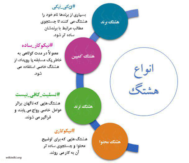 هشتگهای مورد استفاده طیف وسیعی را شامل میشود اما میتوان در چند دسته آنها را تقسیم کرد: