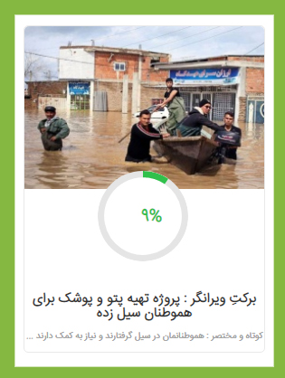 با توجه به شرایط ویژه آب و هوایی در نقاط مختلف کشور عزیزمان و جاری شدن سیل در چندین شهر کشور (شهرهای شمالی ، شهرهای غربی ، شهر های جنوبی و ...)، طبق جلسه فوق العادهای که میان مددکاران موسسه برگزار شد و بر اساس مشورتها و هماهنگیهای انجام شده با گروه مهربانه تصمیم بر آن شد که در زمان تکمیل جمع سپاری مالی، با بررسی شرایط موجود در سراسر کشور و مشورت با مسئولین مرتبط مبنی بر آن که در کدام قسمت و کدام شهر نیاز بیشتری به کمک دارند، محل جرای پروژه انتخاب شده و در گزارش ارائه شده در همین صفحه به حامیان گرامی اطلاع داده میشود.