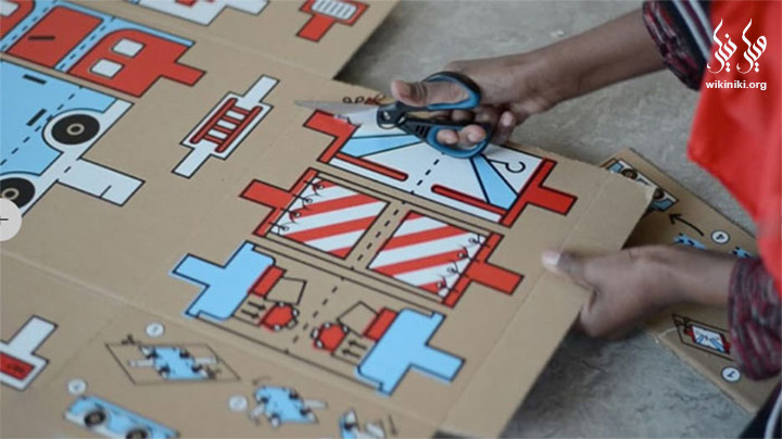 نام این پروژه “داخل جعبه” Inside the Box است. لیسان کونینگ با چاپ کردن اشکال رنگی و بازیهای رومیزی روی بستهبندیهای کارتنی کاری کرد که بچهها بتوانند آنها را با برش و تا کردن تبدیل به سرگرمیهای جالبی بکنند.