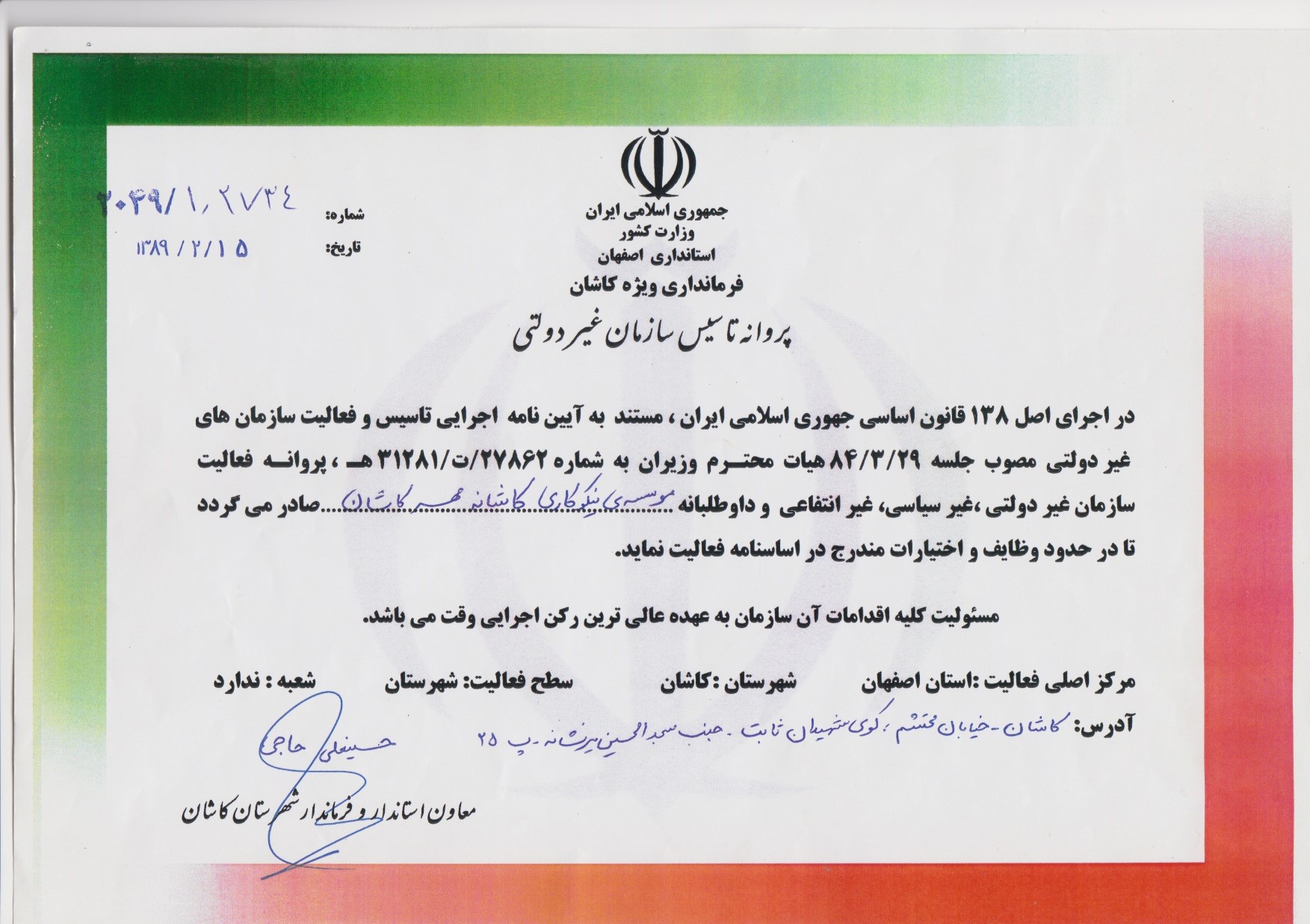 موسسه نیکوکاری کاشانه مهر کاشان