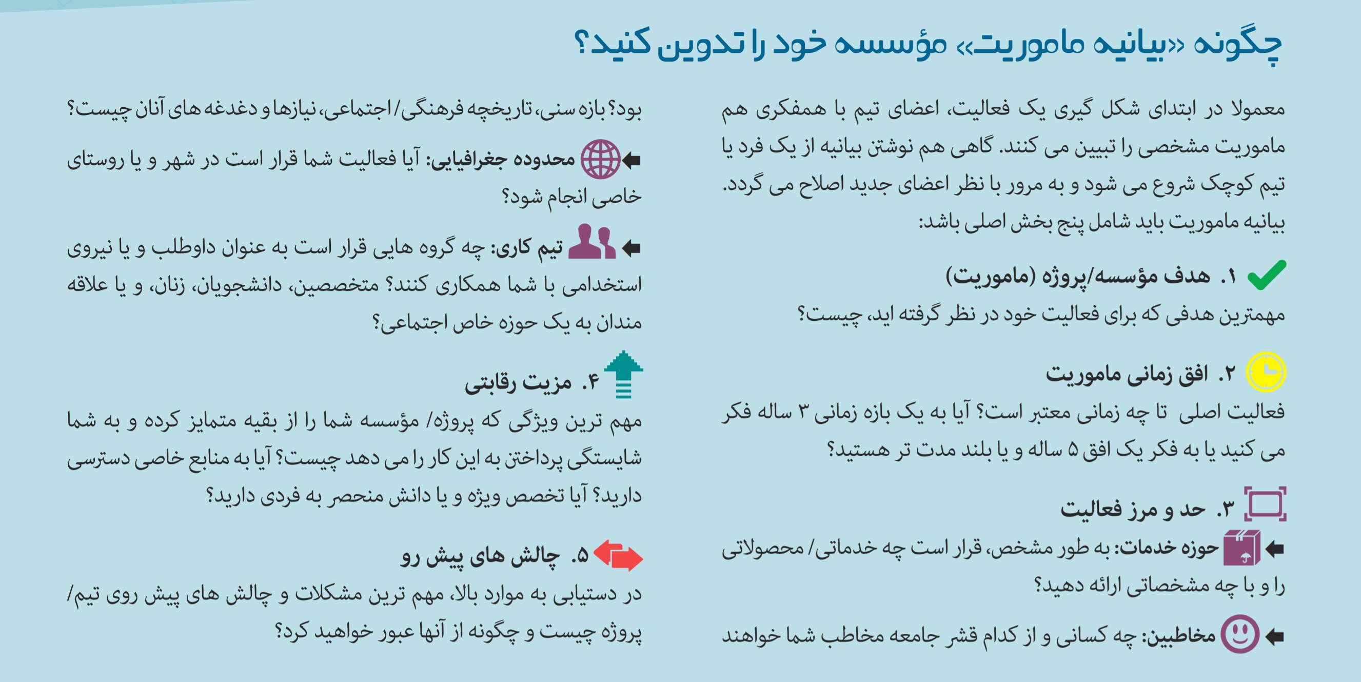 پروژه و موسسه شما، مثل خودتان، نیاز به شناسنامه دارد. بیانیه ماموریت و چشمانداز، شناسنامه خیریه شماست.