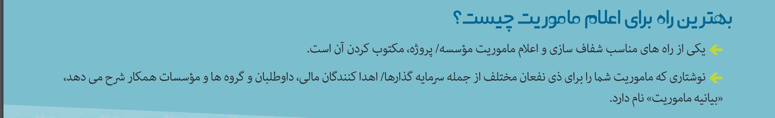 بیانیه ماموریت نوشتاری است که معرف هویت و اهداف موسسه