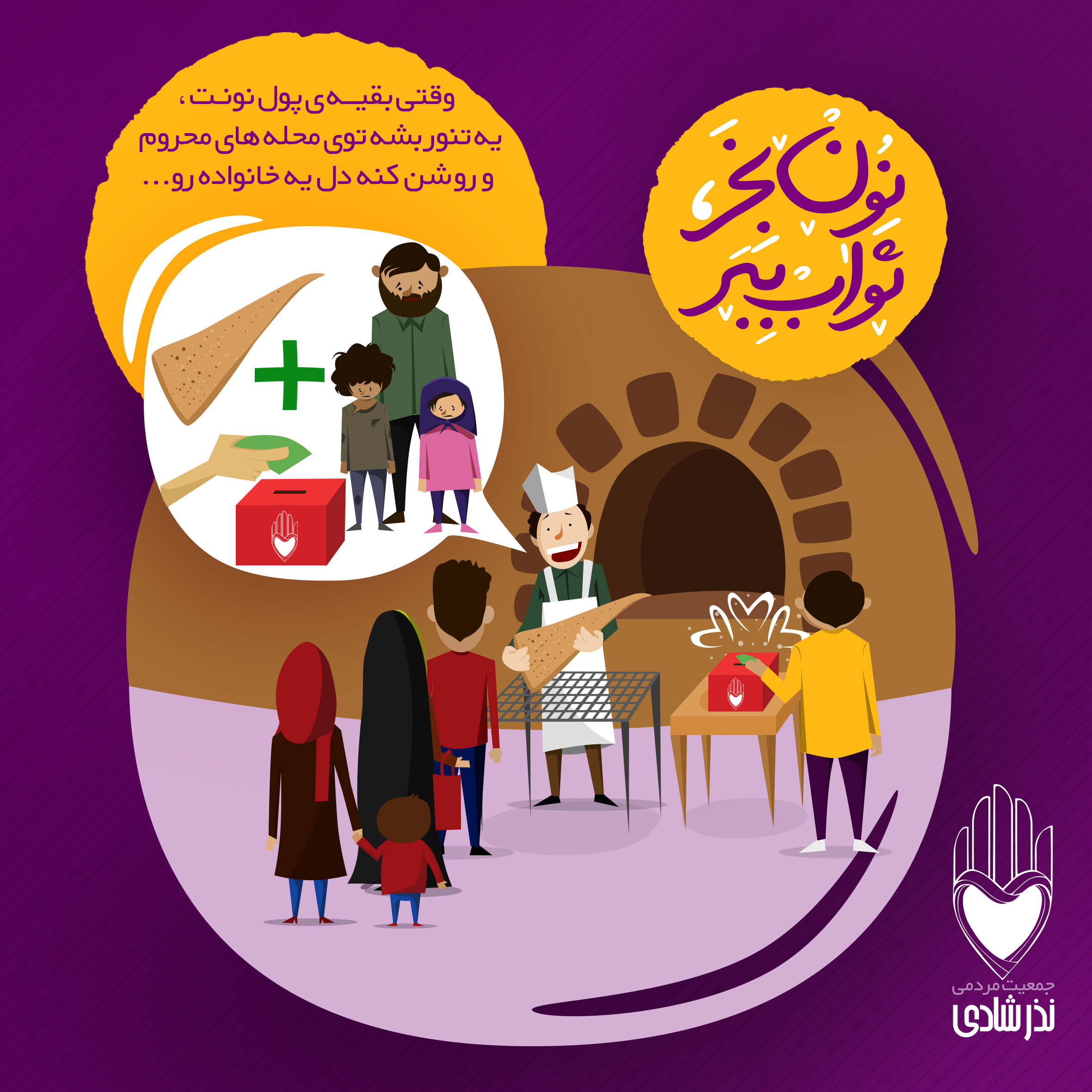 جمعيت مردمى «نذر شادى» قصد دارد با قرار دادن صندوقهایی در مناطق با سطح رفاه بالاتر از مردم بخواهد به جای خرید نان اضافی یا پس گرفتن باقی پول خود از نانوا، هزینه آن را به صندوقها هدیه کنند تا با جمع آوری آنها و ارسال به مناطق محروم تنور رایگانی در آن مناطق روشن شده و نان بر سر سفره محرومان بنشیند.