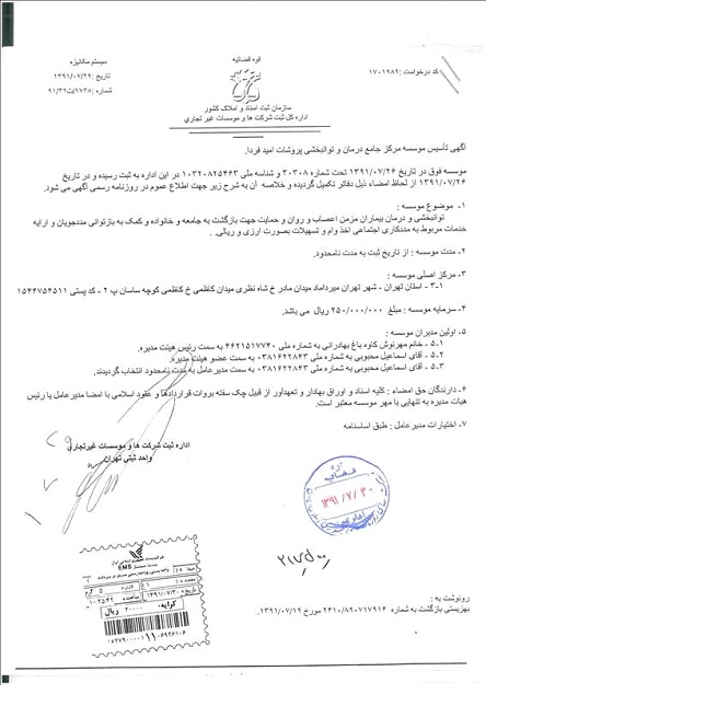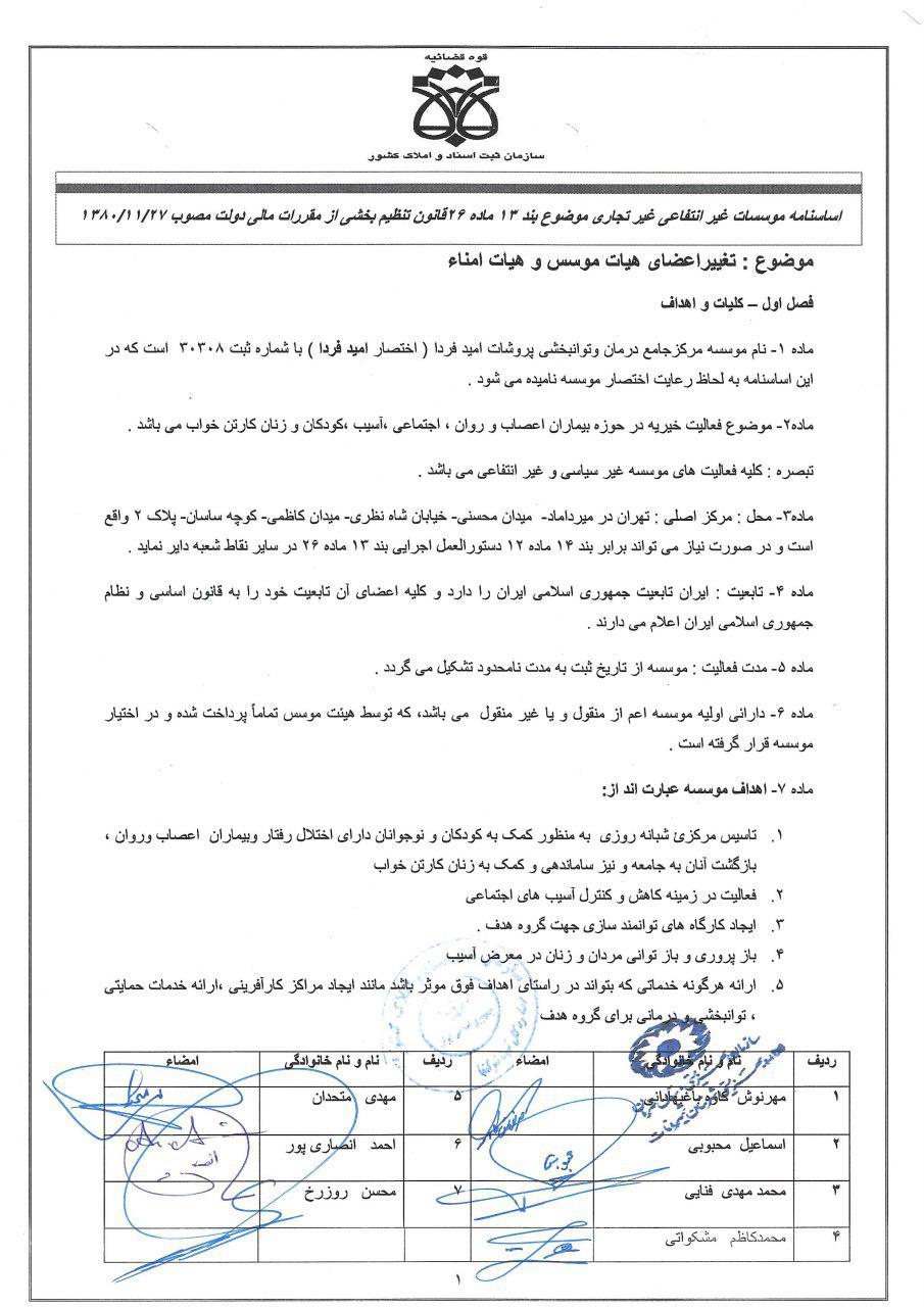 مرکز درمان و توانبخشی بیماران مزمن اعصاب و روان امید فردا، با هدف ایجاد امیدی برای زندگی بهتر برای بیماران مزمن اعصاب و روان از سال 1385 فعالیت خود را آغاز نموده است.
