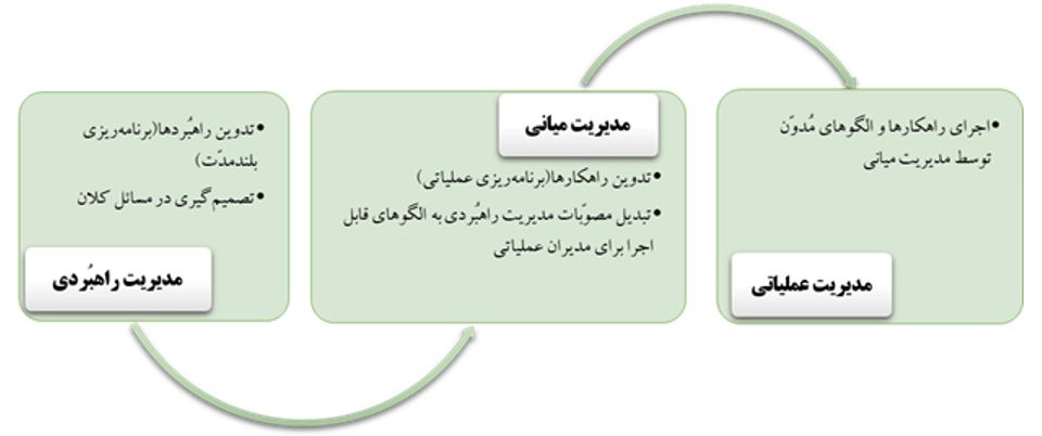 به طور معمول یک مدیر ارشد اجرایی، چند مدیر اجراییِ تابع(Executive Directors) دارد که هر یک، وظیفه بخصوص خود را دارند. برای مثال «مدیر اداری»، «مدیر مالی»، «مدیر آموزشی»، «مدیر ارتباطات» و «مدیر امور فرهنگی-اجتماعی»، چندی از مدیرانِ میانی سازمان هستند که در راستای تحققِّ اهداف سازمان، تصمیماتِ مصوّب هیأت مدیره(=شورای مرکزی) را از طریق برنامهریزی عملیاتی، تبدیل به الگوهای قابل اجرا برای مدیران عملیاتی(سرپرستی) میکنند. مدیران اجراییِ مزبور، تابع مدیر ارشد اجرایی یا همان مدیرعامل هستند. لازم به ذکر است این مراجعِ اجرایی نیز برای آنکه مشمول مفهومِ استقلال گردند میبایست اولاً کادر نیروی انسانی آنها دارای هویّت ایرانی باشد، ثانیاً مُجری برنامهها، خط مشیها و سیاستهای مراجعِ تصمیمساز سازمان خود باشند.