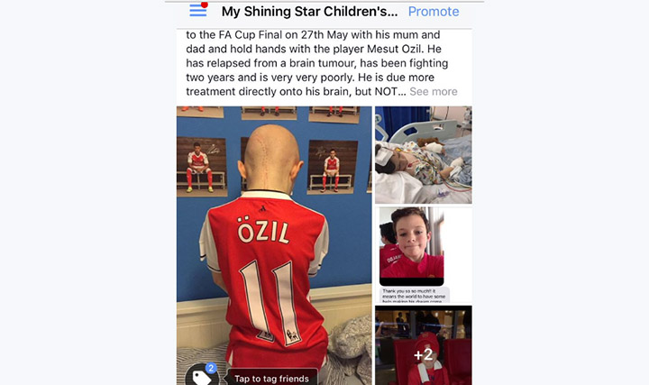 به گزارش ویکی نیکی و به نقل از ورزش سه، این کودک که طرفدار آرسنال است، دوست داشت یکی از بازیهای توپچیها را از نزدیک تماشا کند و درخواستاش که از طریق موسسه خیریه MY shining star مطرح شد، با موافقت اوزیل و باشگاه آرسنال مواجه شد.