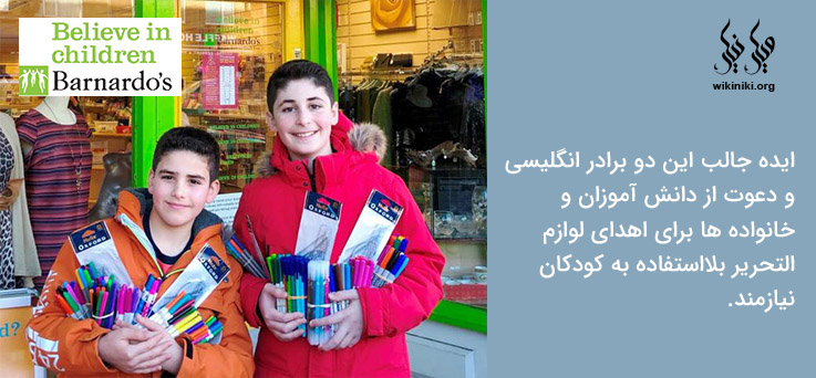 خیریه «برناردوز» با ایده ای متفاوت اقدام به برگزاری کمپین لوازم التحریر برناردوز، نموده است، این کمپین با ایده دو برادر و با همکاری فروشگاه ها و نمایندگان برناردوز در لندن راه اندازی شده است.