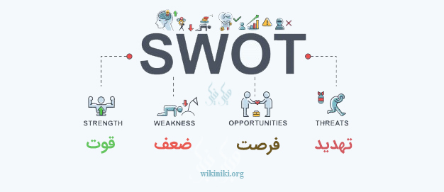 در آنالیز SWOT سعی بر این است که نقاط قوت و ضعف داخل سازمان و همینطور تهدیدها و فرصتهای بیرون از سازمان را شناسایی کنیم.