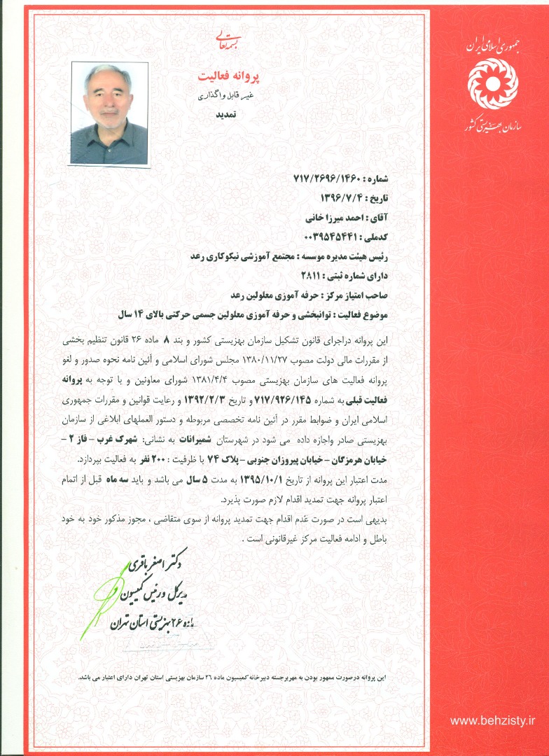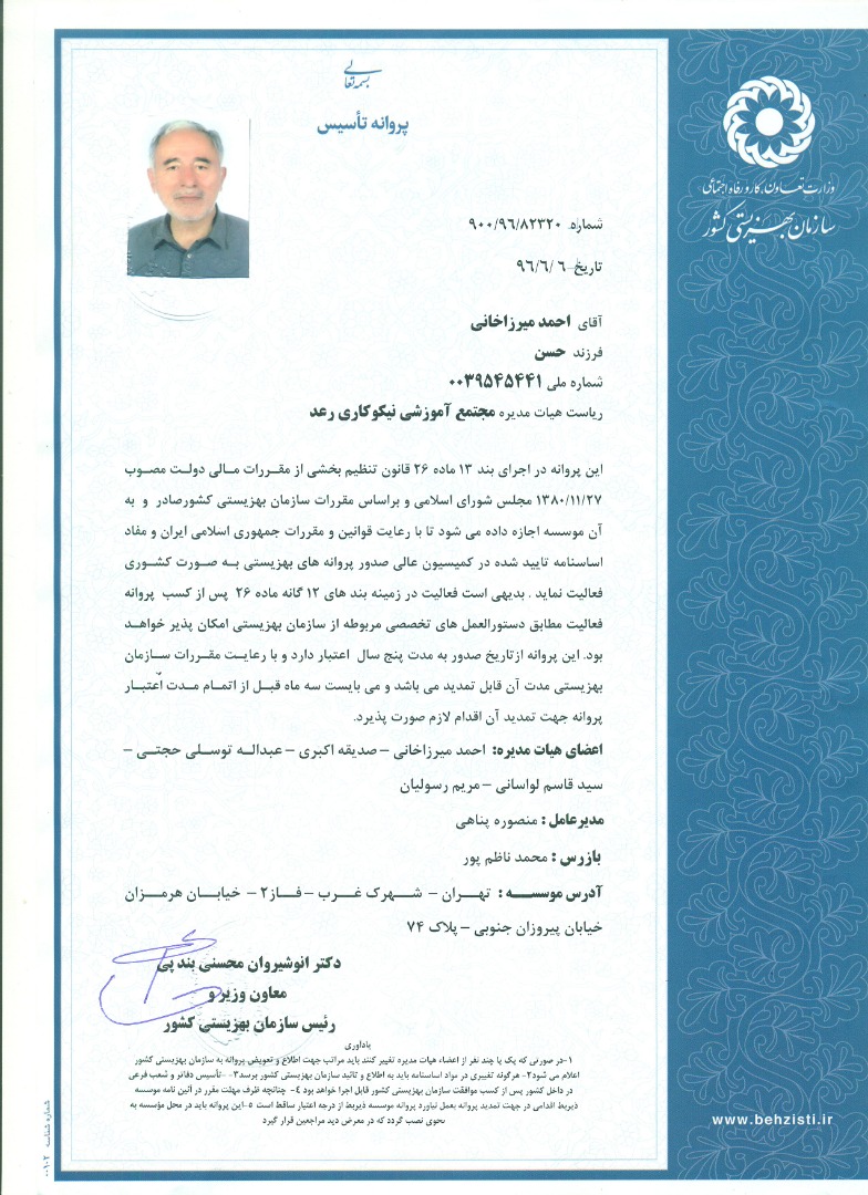 «مجتمع آموزشی نیکوکاری رعد» در سال 1377 با هدف توانمندسازی افراد دارای معلولیت شروع به فعالیت کرده است.