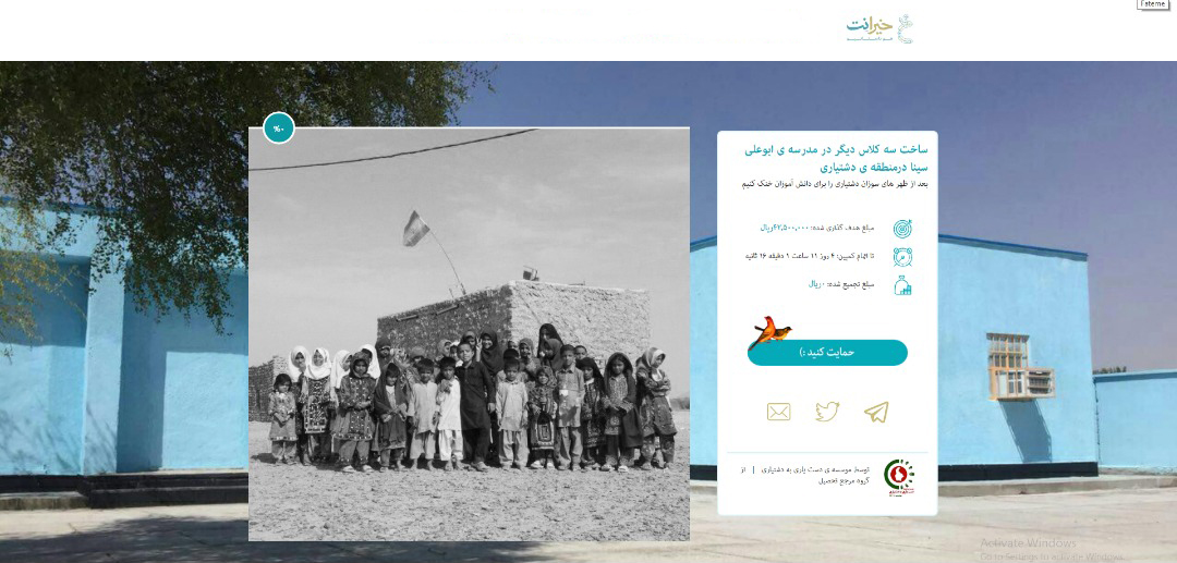 این موسسه در سامانه جمعسپاری «خیرانت» پروژه خود را اطلاع رسانی کرده است. فقط ۴ روز دیگر از اکنون (25آذر 97) تا اتمام مهلت کمپین وقت باقی است، بشتابید تا شما هم در این طرح نیکوکارانه، شرکت کنید.