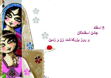 پنجمین روز ماه اسفند در ایران باستان، سپندارمذگان (اسپندگان) یعنی روز بزرگداشت زن و زمین نامگذاری شده است.