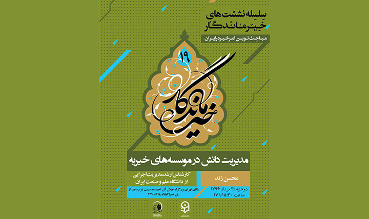 در ادامه راه سلسله نشستهای خیر ماندگار، نوزدهمین نشست با عنوان مدیریت دانش در موسسههای خیریه، برگزار میشود.