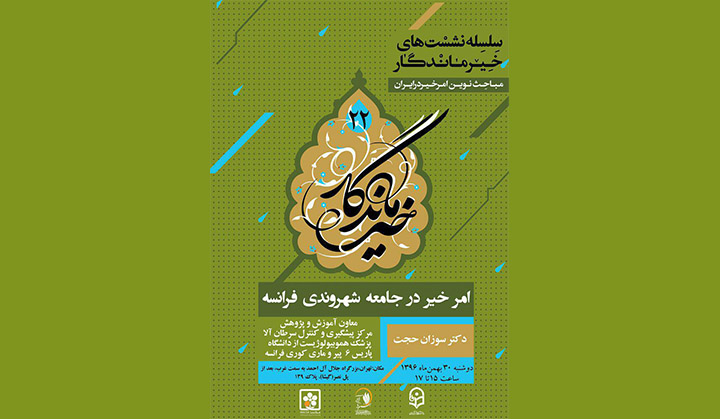 در ادامه راه سلسله نشستهای خیر ماندگار، بیست و دومین نشست با عنوان امر خیر در جامعه شهروندی فرانسه، برگزار میشود.