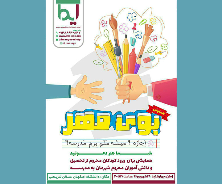 ایما، انجمن امداد دانشجویی مردمی، با هدف ایجاد و بهبود شرایط تحصیلی برای کودکان بازمانده از تحصیل، همایشی تحت عنوان «بوی مهر» را برگزار میکند.