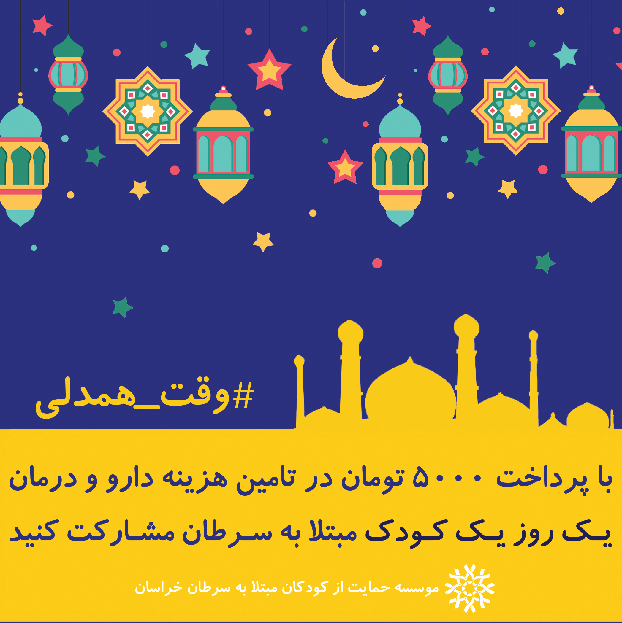 موسسه حمایت از کودکان مبتلا به سرطان خراسان به مناسب ماه مبارک رمضان کمپین خیریه راه اندازی کرده است.