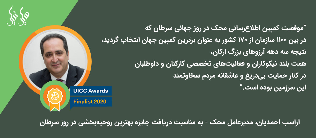 جایزه بهترین روحیه بخشی به مناسبت روز جهانی سرطان (کمپین اطلاعرسانی) – محک