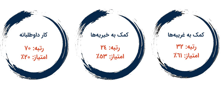آخرین وضعیت ایران در سه شاخص نیکوکاری به ترتیب زیر است:
